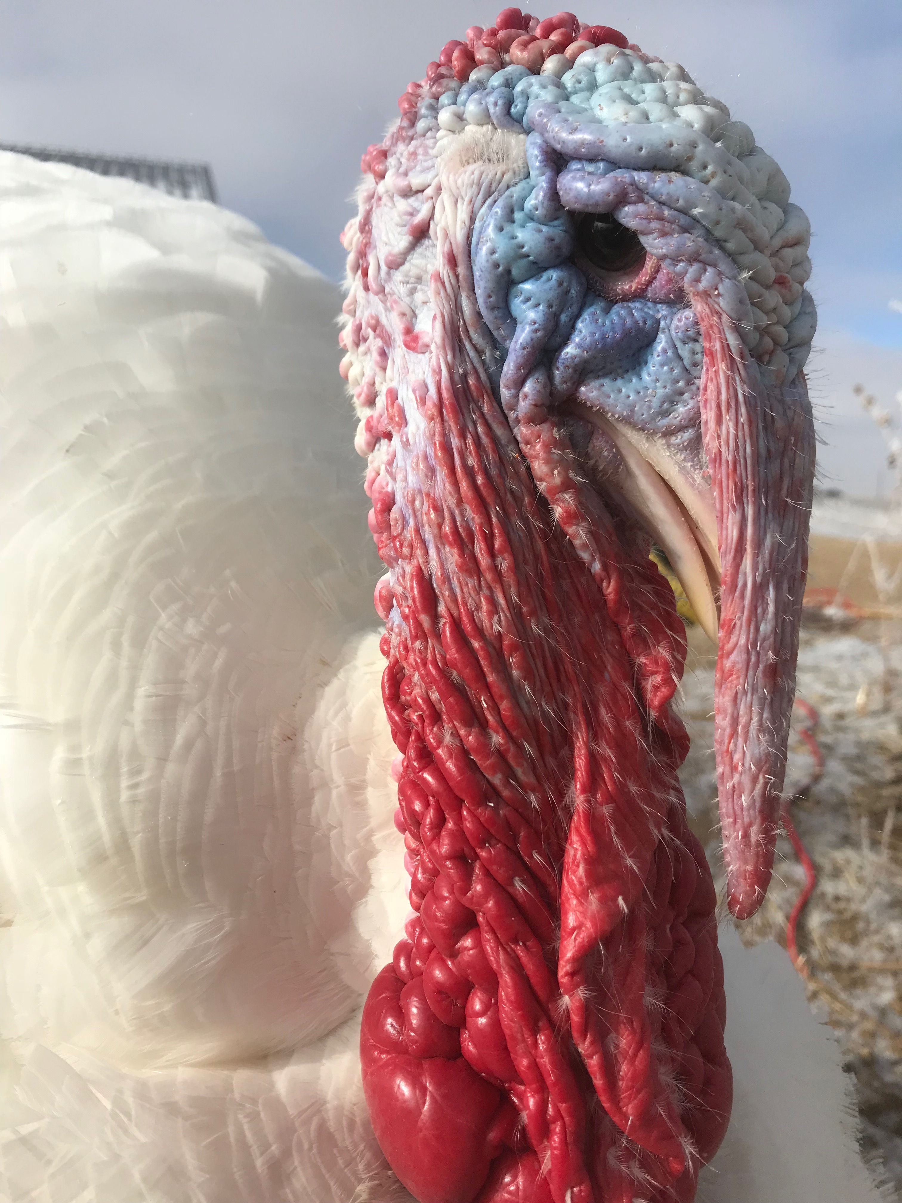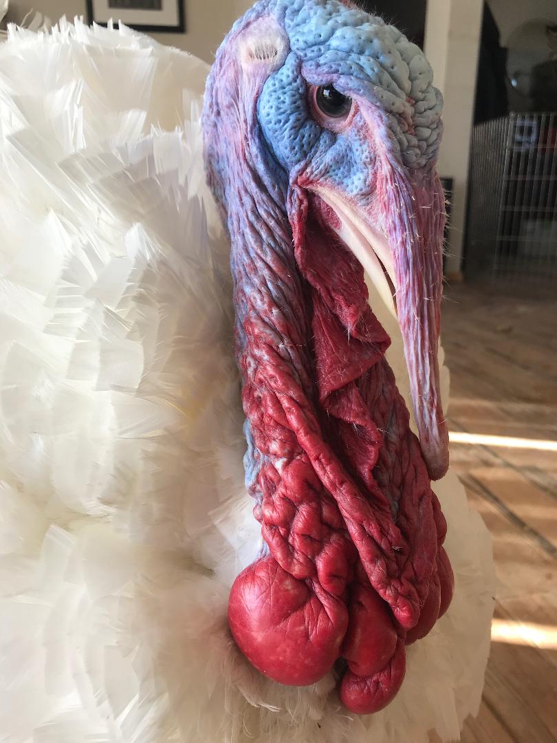 Fillmore was rescued along with Millard and Taub. Fillmore is a happy bird who has become best buds with Sailor Todd. Fillmore was uncertain about us humans at first, but now he has gone from tolerating hugs, to loving to be hugged. Fillmore is a gorgeous young turkey who would have been killed and eating for last years Thanksgiving. Now he is coming up on his second Thanksgiving where he will enjoy his own yummy vegan meal, never knowing the bad stuff that would have happened outside of sanctuaries.